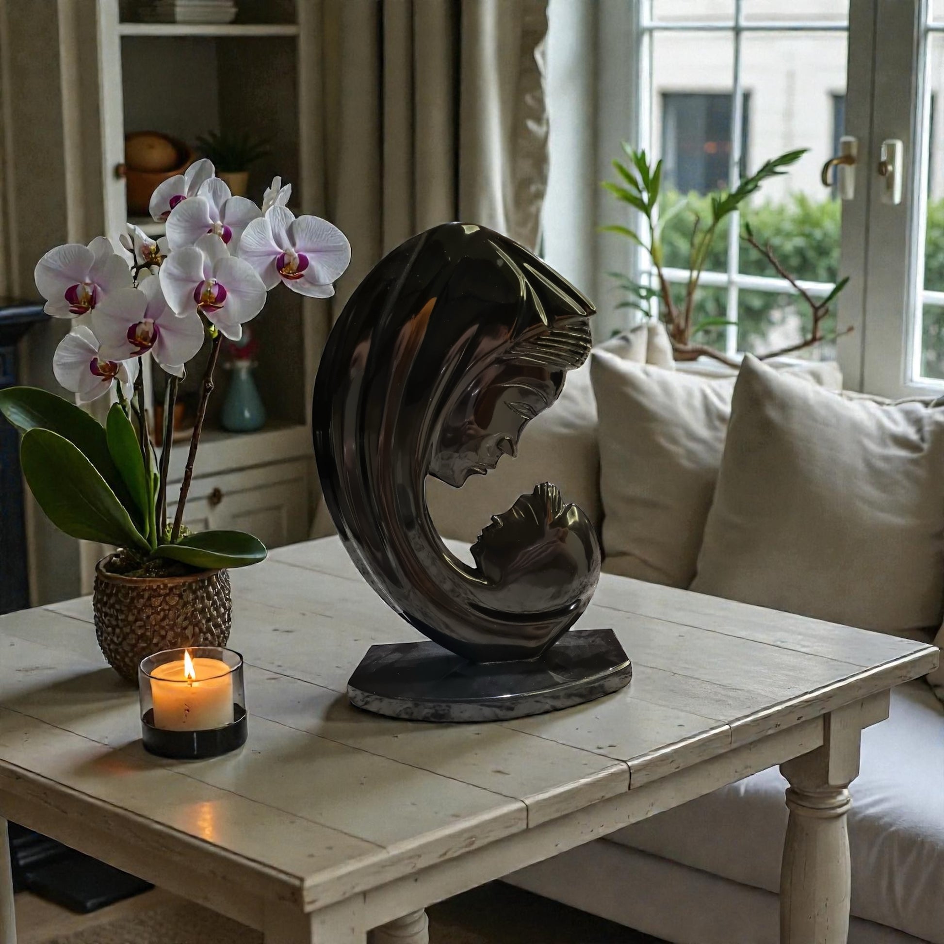 Virgen tallada en ónix de 30 cm de altura